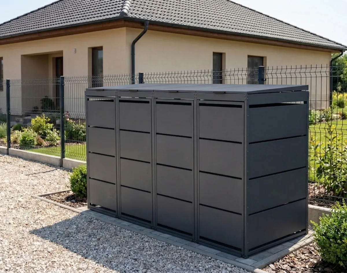 Rend és Tisztaság: Nincs többé felborult kuka vagy szétszórt szemét a bejáró mellett. A tároló esztétikus, rendezett megjelenést biztosít otthonának.